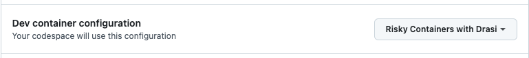 This will open a page with some configuration options. Make sure that the Branch selected is main and set the Dev Container configuration to Risky Containers with Drasi.