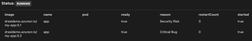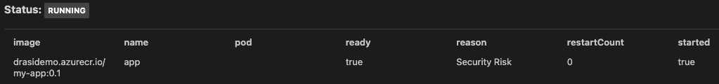| 1 | ghcr.io/drasi-project/my-app:0.1 | Security Risk |