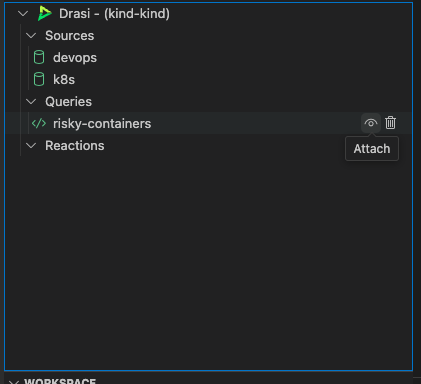 The VS Code extension Drasi explorer can be used to attach to the query to monitor it in realtime.